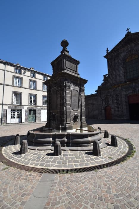 Fontaine élevée en 1764 sous l'intendance de monsieur de Balainvilliers. L'ouvrage se présente comme un massif carré orné sur chaque face de pilastres ioniques. Chacune des faces encadre une longue inscription latine ou française. Le couronnement de la fontaine est caractéristique de l'époque.