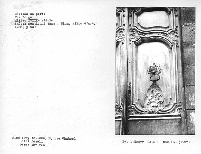 Auvergne-Rhône-Alpes ; Puy-de-Dôme (63) ; Riom ; 2 rue Chabrol