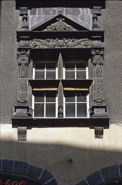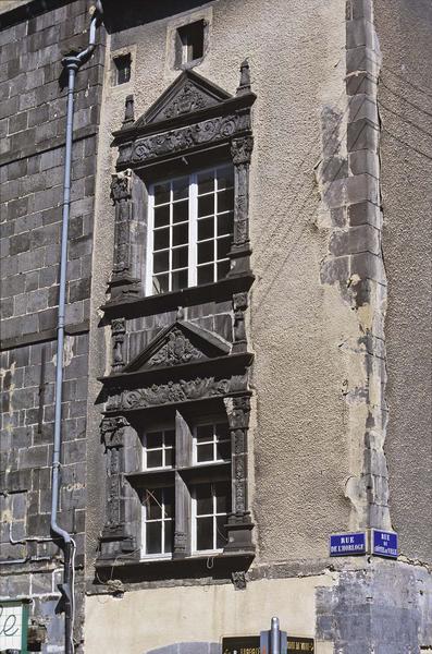 Edifice remontant à la Première Renaissance, présentant une façade percée de deux fenêtres Renaissance superposées aux premier et second étages. Trois de ces fenêtres conservent leurs croisées. L'appui saillant est supporté par deux consoles à enroulements, au décor végétal. Des pilastres garnissent les montants, posés sur des socles plats et surmontés de chapiteaux supportant l'entablement, dont la frise du linteau. Celle-ci, limitée de chaque côté par une agrafe à enroulement décorée d'une palmette, est sculptée de part et d'autre d'un masque ou d'un bouquet de feuillage, de deux personnages dont l'un présente un buste d'homme, l'autre de femme, à longue queue de feuillage terminée par un enroulement en volute. Au-dessus d'une corniche saillante abritant la frise de ce linteau, un fronton triangulaire, posé entre deux candélabres, inscrit un écu armorié timbrant un cartouche aux cuirs découpés et enroulés, dans un entourage de feuilles, de fleurs et de fruits. Un petit candélabre surmonte la pointe de chaque fronton des fenêtres du premier étage, et sous la pointe de celles du deuxième est sculpté un masque léonin.
