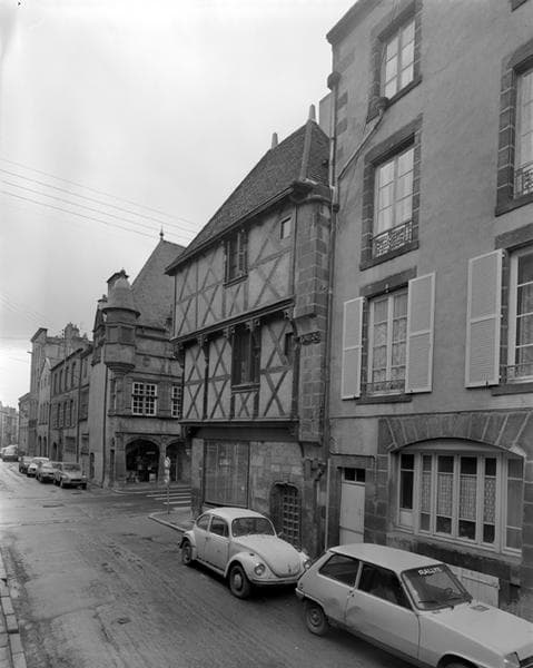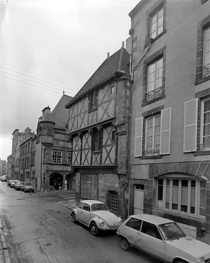 A l'exception du soubassement et du mur du fond, maison construite en bois, la seule de ce type semblant subsister à Riom. L'édifice se compose de deux étages, le second étant bâti en léger encorbellement sur le premier. Cet encorbellement est soutenu par des arcatures à redents qui l'ornent sur tout son pourtour. Dans les parties basses en pierre se remarquent de curieuses têtes formant cul-de-lampe. £Cette maison passe pour avoir appartenu à Jean Mazuer, jurisconsul de Riom du 15e siècle.