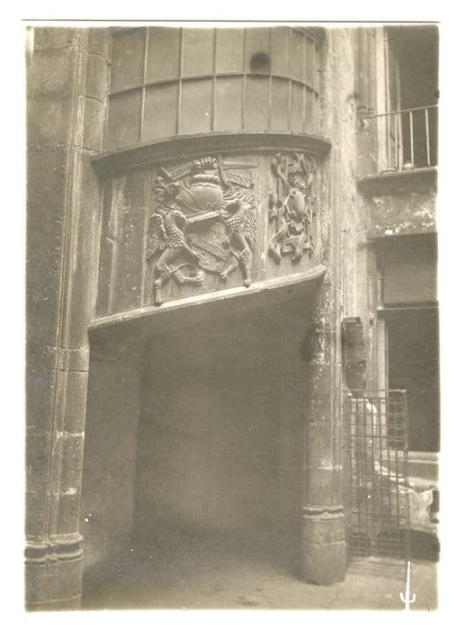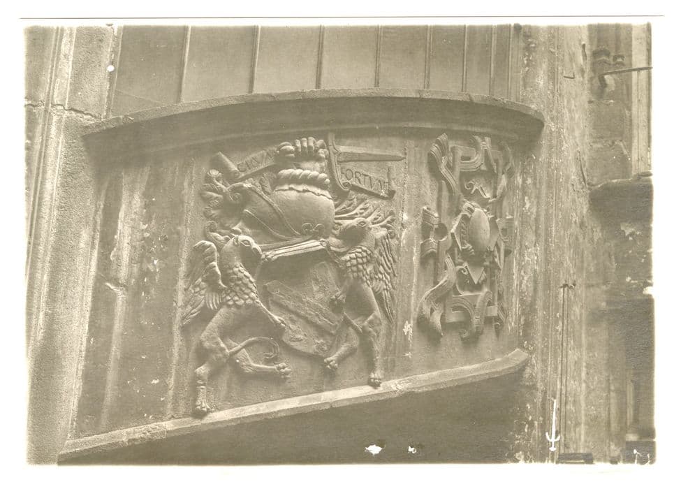 Cette maison possède une cour intérieure ornée d'un escalier tournant du 16e siècle. Sur le premier bandeau extérieur de l'escalier, deux cartouches sculptés tiennent tout le bandeau. L'un représente un écu à demi martelé tenu par deux griffons, surmonté d'un heaume coiffant une tête humaine et portant, en cimier, une main armée d'un glaive. Derrière le cimier court une banderole portant une devise. L'autre cartouche est formé d'une série d'entrelacs entourant un médaillon.