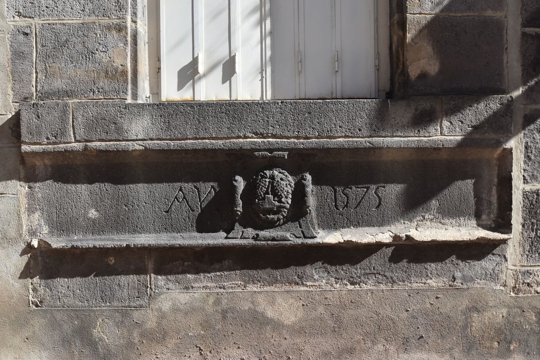 Sur la façade, servant d'allège à une fenêtre du rez-de-chaussée, un linteau de cheminée, qui se trouvait autrefois à l'intérieur de la maison, a été réutilisé à la place qu'il occupe. Ce linteau d'un bloc de pierre de Volvic, mesurant plus d'un mètre cinquante de long, porte en son centre un cartouche gravé de deux grappes de raisin avec la serpette. De chaque côté du cartouche se lit une inscription en caractères gothiques indiquant l'année 1575.