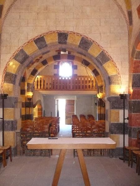 L'église dépendait autrefois d'un prieuré de Bénédictins d'Issoire. L'édifice actuel est roman, le clocher ayant été modifié à une époque récente. Le plan présente une nef simple à deux travées carrées, un avant-choeur surélevé barlong suivi d'un choeur terminé en hémicycle. Deux chapelles formant transept flanquent la seconde travée au nord et au sud. La croisée de transept est voûtée d'une coupole sur trompes. Cette coupole est soutenue par quatre arcs en plein cintre. L'abside est en cul-de-four.