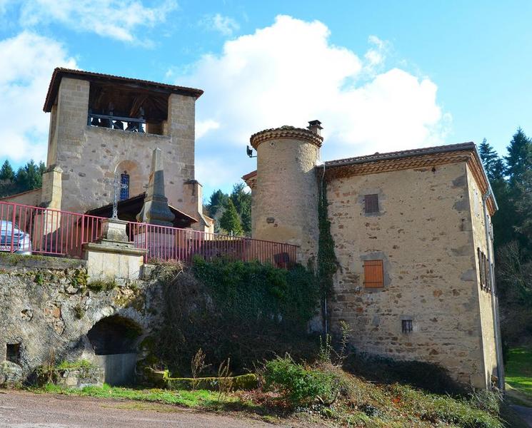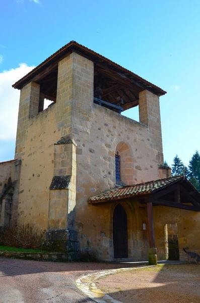 L'église fut donnée en 927 par Acfred, duc d'Aquitaine, au prieuré de Sauxillanges, donation confirmée par une bulle de 1096. Cet édifice est formé d'une nef à chevet plat, voûtée en berceau brisé, à laquelle ont été ajoutées des chapelles latérales. Un clocher rectangulaire a été remonté à une époque récente. Le portail d'entrée est fermé par deux vantaux en bois du 15e siècle, formés de planches clouées sur une armature extérieure de larges croisillons formant des compartiments rectangulaires. L'assemblage de ces derniers est fait à queue d'aronde et maintenu à l'aide de clous en fer forgé à tête arrondie ou pointe de diamant. La fermeture est assurée par un lourd verrou en fer forgé, gravé, ainsi que sa poignée articulée, de différents motifs (croix, fleurs de lys, ondes...).£