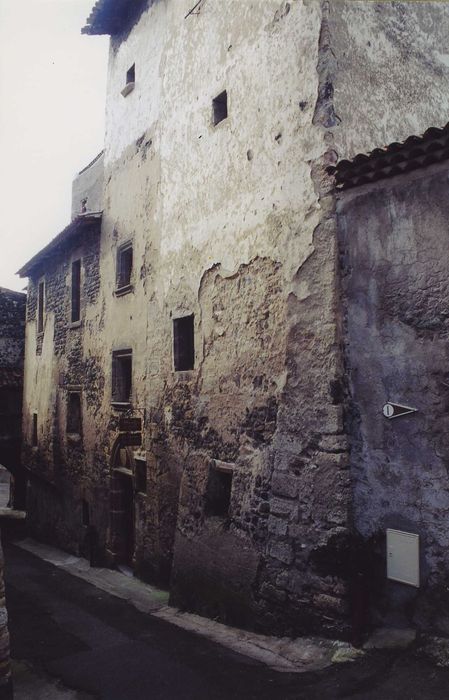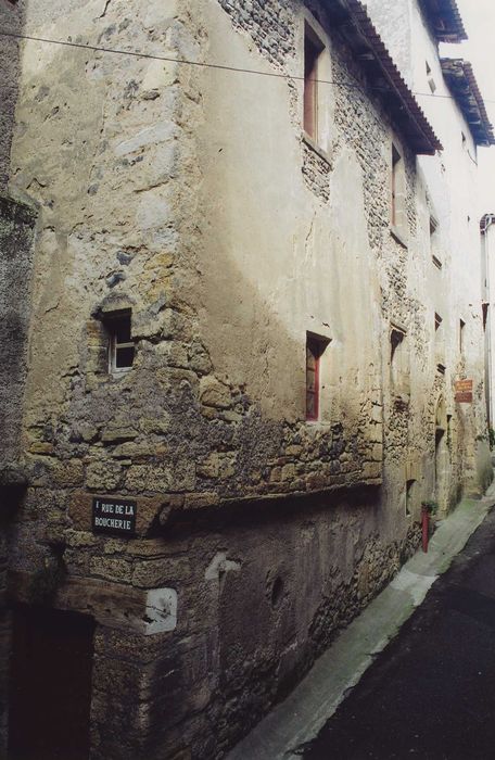 Cet immeuble présente un décrochement sur la rue des Boucheries, peu après le passage de l'ancienne porte fortifiée. Un masque est sculpté à l'angle. La façade longeant la rue présente une tourelle établie vers son milieu mais élevée à une hauteur supérieure. Cette tourelle s'ouvre par une porte à l'encadrement mouluré d'un tore reçu sur bases prismatiques et dont l'arc brisé inscrit un tympan chargé d'un écu portant des armoiries bûchées.