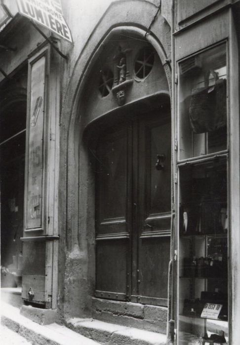 L'entrée de cette maison conserve un tympan caractéristique d'une époque proche de la Renaissance où chacun souhaitait marquer l'entrée de sa maison par un ornement ou un symbole. Le tympan est orné en son milieu d'une niche à arc trilobé. Chaque montant est décoré d'une colonnette engagée reposant sur base prismatique. La petite niche renferme la statuette d'un personnage barbu, drapé dans de longs vêtements, agenouillé et joignant les mains dans une attitude orante. Sous cette niche est sculpté en relief un écu portant une étoile à six branches, un cep de vigne chargé de grappes, et une fleur. De part et d'autre de la niche, ce tympan est percé d'une ouverture circulaire à réseau en étoile à six branches. Le reste de la façade est du 18e siècle.