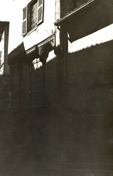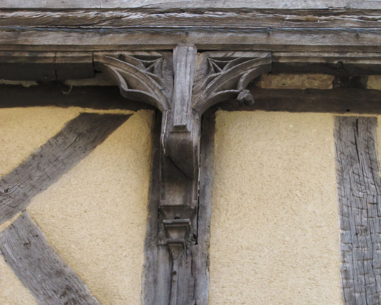 Maison présentant des vestiges de pans de bois sculptés du 15e siècle. Porte d'entrée chanfreinée.