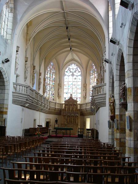 A la fin du 19e siècle, la Sainte Chapelle est agrandie pour devenir une église paroissiale dont elle constituerait le choeur. L'architecte Aymon Mallay est probablement l'auteur de cet agrandissement, réalisé dans un style gothique tardif proche de la construction initiale du 16e siècle. L'ancienne chapelle voûtée d'arêtes est composée d'une nef à quatre travées fermée par un choeur polygonal et parcourue à mi hauteur par une galerie de pierre au-dessus de laquelle sont disposées des statues d'apôtres en terre cuite peut-être dues à l'artiste italien Rustici. Le choeur possède des vitraux du 16e siècle. Dans le prolongement de cette partie ancienne, la nef de 1840, également voûtée d'arêtes, s'étend sur cinq travées ouvrant sur deux collatéraux. Ceux-ci comportent une chapelle du Sacré Coeur garnie de boiseries sculptées (sans doute des remplois d'éléments du 18e siècle) et un ensemble complet de vitraux dus à différents maîtres verriers clermontois.
