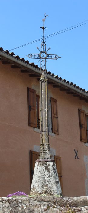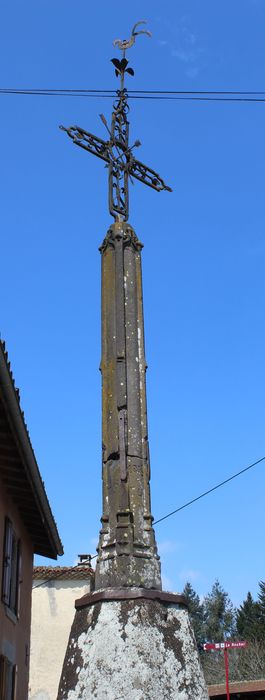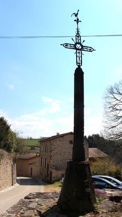 Croix composée d'un fût en pierre surmonté d'une croix en fer moderne.