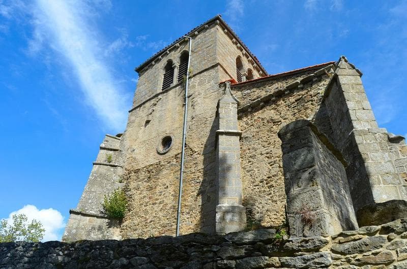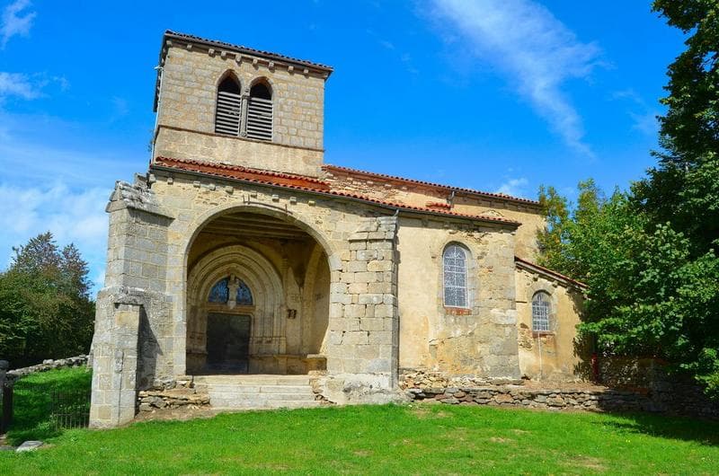 L'église, lieu de pèlerinage, est connue dès 1100, mais fut reconstruite au 15e siècle. L'édifice comporte un choeur auquel font suite deux travées voûtées d'ogives, deux chapelles de chaque côté de la travée suivant le choeur. Le portail nord est à encadrement ogival à moulures qui se trouve sous un porche autrefois voûté d'ogives. Une sacristie voûtée est accolée au sud du choeur. L'accès s'y fait de l'intérieur de l'église par une porte à linteau en accolade. Au côté nord de la travée ouest, une porte en accolade donne accès à la tourelle ronde renfermant l'escalier en colimaçon conduisant au clocher. Le clocher, de forme carrée, comporte sur chacune de ses faces des fenêtres géminées en arc brisé dont la colonne médiane cylindrique est surmontée d'un chapiteau. Cet édifice est caractéristique des églises du Livradois.