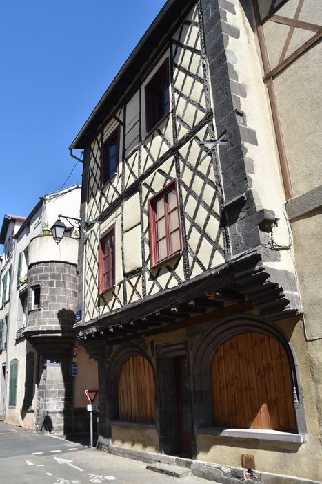 Maison de ville à pans de bois de la fin du Moyen-Age se composant d'un mur gouttereau en surplomb sur la rue, épaulé par deux murs pignons dont le profil en surplomb, également sur la rue, dessine une console moulurée à encorbellement. Le rez-de-chaussée est percé d'une porte centrale accostée de deux arcades en anse de panier. Les deux grandes arcades correspondaient à l'origine à deux boutiques à étals de bois. Arcades et porte ont conservé une mouluration typique de l'époque flamboyante. Le pan de bois se compose de sablières et de poteaux délimitant cinq travées de largeurs inégales, garnies de croix de Saint-André et percées par quatre fenêtres. Pans de bois et percements ont été remaniés postérieurement au 16e siècle.