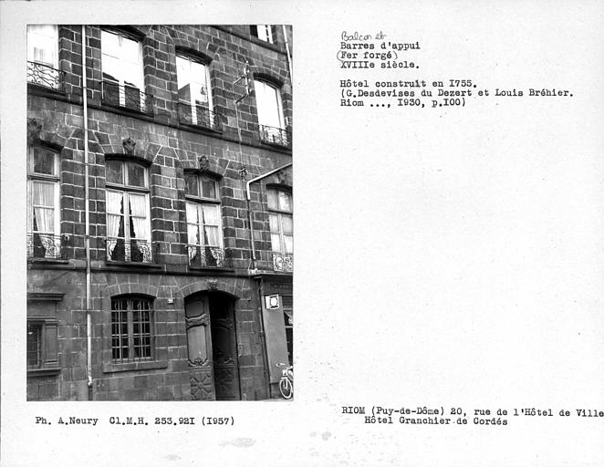 Auvergne-Rhône-Alpes ; Puy-de-Dôme (63) ; Riom ; 20 rue de l'Hôtel-de-Ville