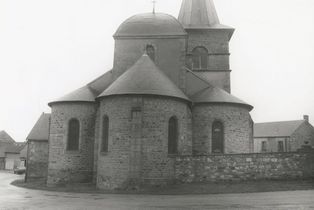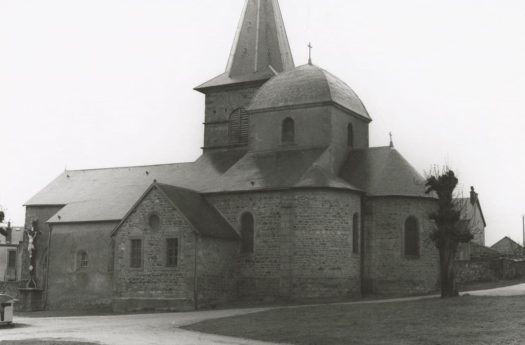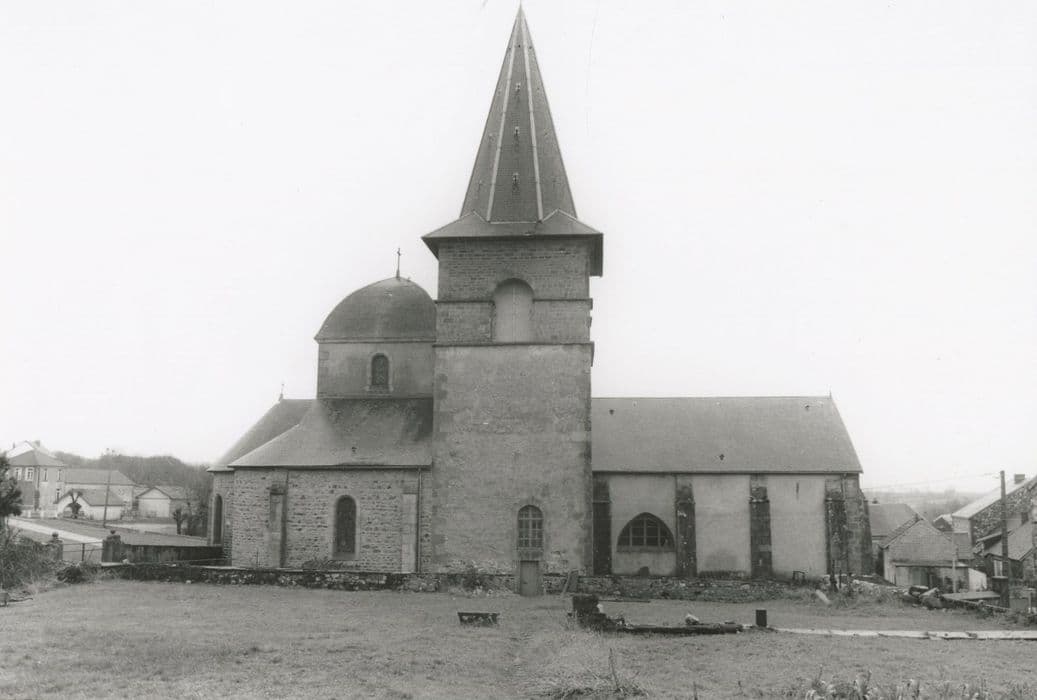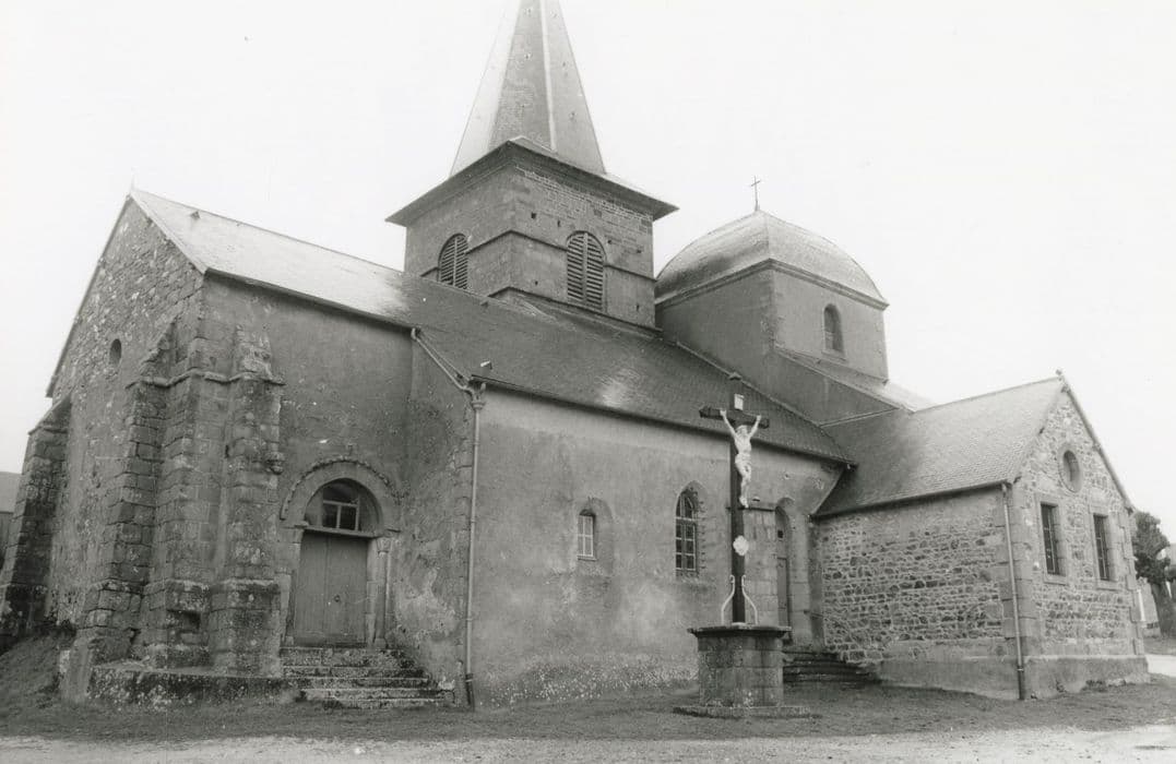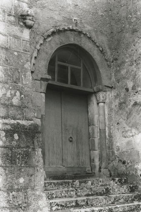 Cette église a subi aux 19e et 20e siècles, agrandissements et restaurations. Elle conserve toutefois une nef du 12e ou 13e siècle portant des traces de décors peints (croix de consécration, rosaces, bâtons rompus...). L'arc diaphragme qui sépare la nef du choeur, repose sur deux colonnes engagées surmontées de chapiteaux naïvement sculptés dans l'esprit roman. Le chapiteau nord est à crochets imitant les feuilles d'acanthes. Le chapiteau sud montre Adam et Eve commettant le pêché originel.