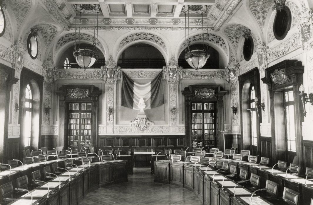 Salle des délibérations du Conseil Général avec son décor et ses pupitres, au premier étage (cad. IP 195) : inscription par arrêté du 7 octobre 1991