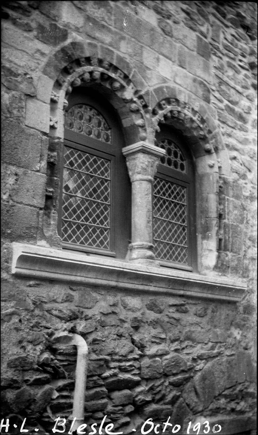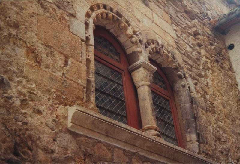 La fenêtre géminée à une seule colonnette centrale subsistant dans cet édifice, reste de l'ancien château des seigneurs de Mercoeur, se veut un détail d'architecture civile du 12e siècle. Les deux archivoltes sont ornées d'un double rang de fleurettes et de plusieurs petites têtes.