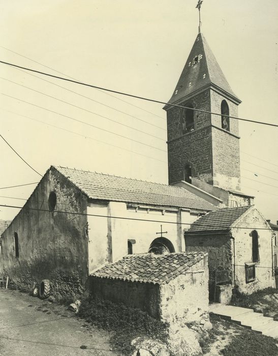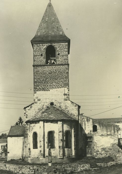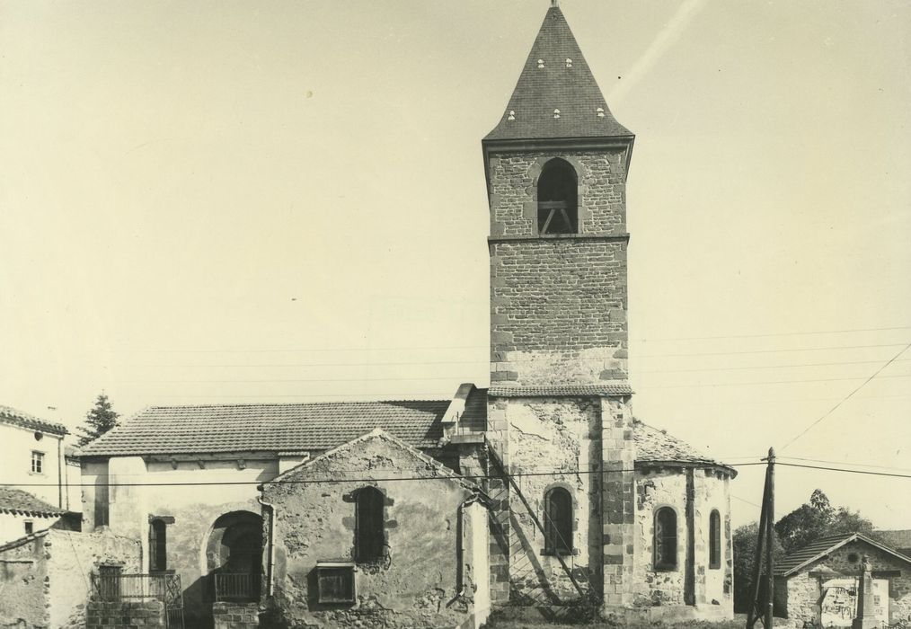 L'église, du 12e siècle, est de plan irrégulier dérivé de la croix latine. Un collatéral nord semble avoir été ajouté au 17e siècle, puis une chapelle sud au 19e. Choeur à une travée sous coupole de plan barlong articulé à une abside voûtée en cul-de-four. Chaque travée de nef s'organise de façon originale en deux arcs plein cintre jumelés à retombées externes sur piédroits, à retombées internes sur colonne circulaire engagée originellement dans le mur gouttereau. Lors des adjonctions des collatéraux, ces colonnes sont devenues indépendantes mais doublées par un arc plus bas et légèrement décentré. A l'intérieur, le décor se concentre sur les culots figurés des pendentifs de la coupole, les chapiteaux à figures et décor pseudo végétal de l'abside, les motifs ornementaux à répétition, les besants sur le bahut.
