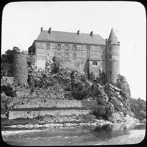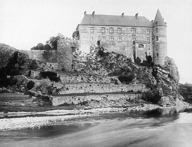 Château presque entièrement reconstruit au 19e siècle d'après des modèles anciens. Les vastes bâtiments qui entouraient la cour diparurent dans un incendie. En 1793, ne restait debout que l'aile construite au-dessus du ravin. L'édifice fut vendu comme bien national et entièrement dépecé. Les parties anciennes sont réduites à quelques pans de murs, une porte du 14e et 17e siècle, quelques fenêtres et la chapelle (salle voûtée d'ogives). Le bâtiment central comportant deux étages a été fortement restauré. Il comprend la porte d'entrée datée de 1634.