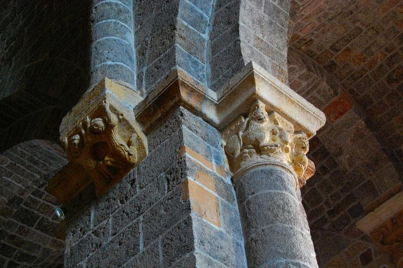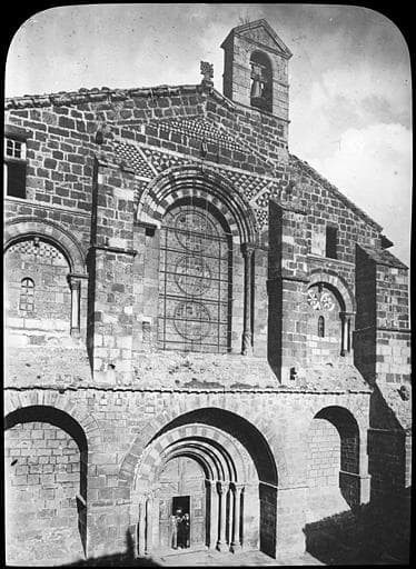 Vers 680, Calminius, gouverneur d'Auvergne, bâtit un oratoire dédié à Saint-Pierre sur sa propriété du Villard, certainement à l'emplacement de l'actuel Monastier, au nord de l'église. Cet oratoire, ruiné et trop petit, est abandonné. Vulfade, abbé du Monastier de 950 à 982, entreprend une nouvelle construction au sud de l'oratoire. L'édifice, construit sur de mauvaises fondations, est reconstruit à partir de 1086 et s'achève dans la première moitié du 12e siècle. Fin 15e - début 16e siècle, réfection des voûtes de l'église, construction de la grande tour des cloches, de l'escalier devant l'église et du jubé. La règle primitivement suivie dans le monastère est celle de Saint-Honorat, remplacée ensuite par celle de Saint-Benoît. Le cloître est rebâti vers le milieu du 18e siècle. Quelques restaurations à la fin du 19e siècle. L'église était auparavant dédiée à saint Chaffre.