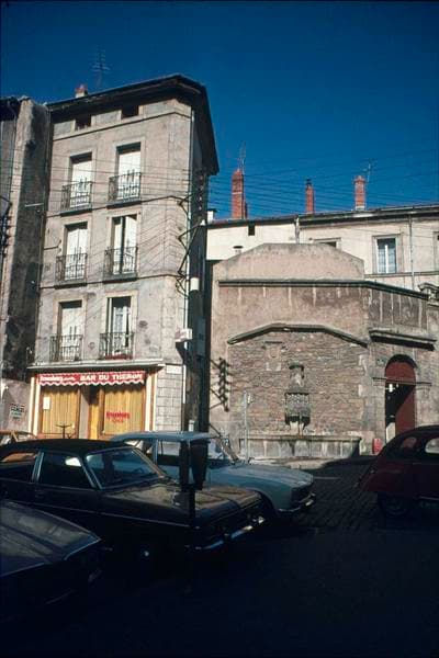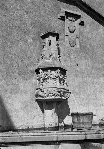 Fontaine de la fin du 15e siècle, en grès de Blavozy, adossée au mur pignon d'une maison qui porte, en outre, deux écussons, l'un aux armes du Puy (aigle aux ailes déployées) , l'autre aux armes de France.