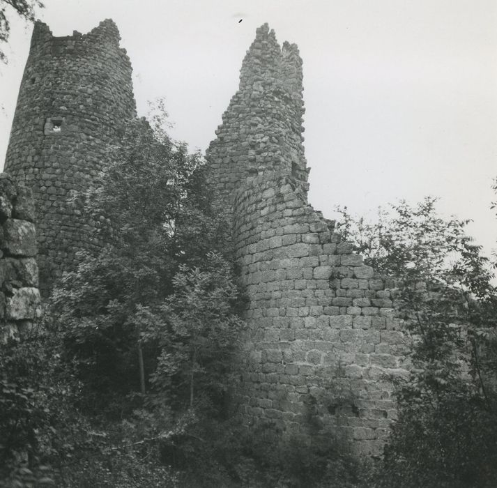 Jonchères était placé sous la mouvance des évêques du Puy par bulles de 1164 et 1267. Dès le début, sans doute, il est co-seigneurie. En 1285, Gilbert de Saint-Haon rend hommage à l'évêque du Puy pour ce qu'il tient dans le mandement du château de Jonchères, pour la tour et l'eau de l'Allier ; de même Ebrard de Pradelles pour la quatrième partie de la tour de Jonchères. La ruine de la baronnie daterait de la période 1769-1806. Les ruines comprennent un château fort des 11e-12e siècles, une tour carrée, une tour circulaire, la façade d'un corps de logis reconstruit au 18e siècle.££Le château se situe sur un éperon rocheux dominant l'Allier. A l'est, trois lignes de défense successives semblent protéger le point le plus élevé de l'éperon, choisi pour la construction du donjon. De plan rectangulaire, le donjon a perdu sa partie nord. L'intérieur semble avoir comporté trois étages. Au nord, un mur de soutènement a été construit de chaque côté d'un fossé. Le rempart s'appuie sur trois tours dont deux sont encore debout. Celle qui se trouve le plus à l'ouest forme liaison avec le mur de défense ouest. Cette façade a été privilégiée au 18e siècle en raison du panorama. A la muraille nord s'appuie une tour semi-circulaire dont les trois niveaux intérieurs étaient voûtés. Un conduit de latrines a été ménagé dans la paroi même, sur toute la hauteur.