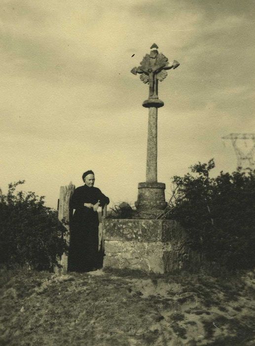 Croix du 17e siècle présentant un socle en forme de meule à section légèrement tronconique. Un fût supporte le croisillon par l'intermédiaire d'un tailloir sphérique. Le croisillon est orné d'une gloire et terminé par une sorte de palmette. La croix de Saint-Maurice, avec cette gloire, rappelle les bijoux du Puy, crois d'or ou émaillées. Cette disposition semble rare pour une croix de carrefour.