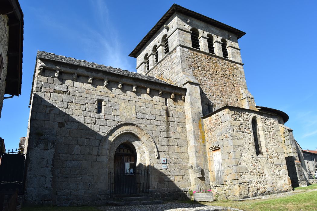 Petite église romane avec choeur reconstruit au 15e siècle ainsi que les transepts qui sont une adjonction de cette époque. Le clocher semble roman. Il était orné sur chaque face de deux grosses têtes saillantes dont quelques-unes subsistent encore. La porte a sans doute été refaite au 14e siècle. L'archivolte présente des billettes ; le tore du premier rouleau s'orne de deux figures de chouettes en guise de chapiteau. A la croisée du transept, coupole romane à huit pans sur trompes.