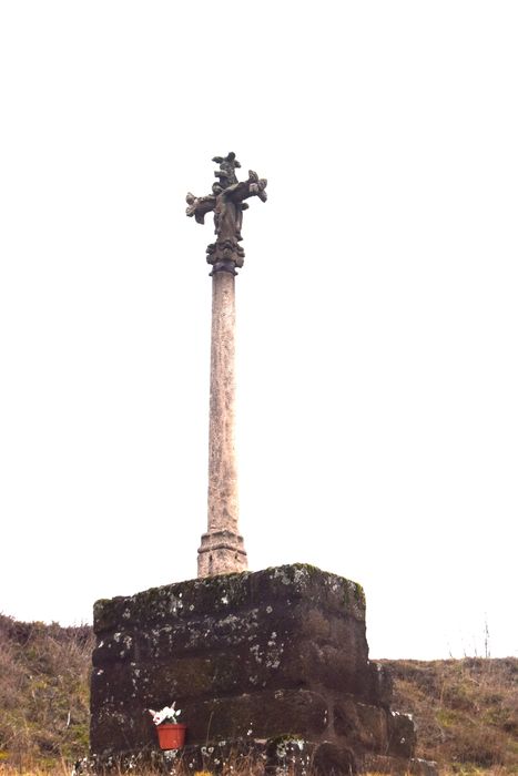 Edicule de la fin du 15e siècle ou du début de la Renaissance. La croix se compose d'un grand fût cylindrique avec base et chapiteau surmonté de la croix proprement dite. Cette dernière partie porte, sur une face, le Christ, et sur l'autre une Vierge de Pitié debout, le Christ entre ses bras. Les branches de la croix sont torsadées avec des cours de perles et terminées par des fleurons cruciformes.