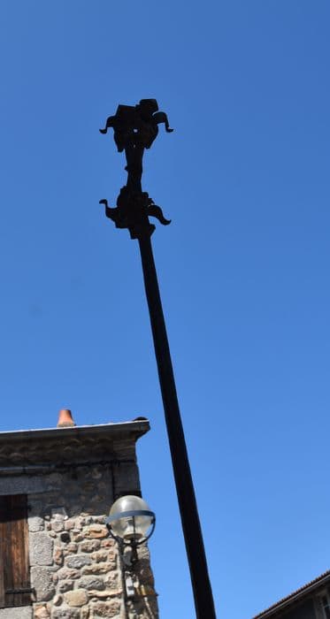 Croix en fer forgé datant, d'après la tradition, de l'époque du siège de Saugues par les Anglais. L'ouvrage est formé d'une tige droite et unie, de forme quadrangulaire. La croix proprement dite est formée de croisillons aux extrémités desquels se trouvent quatre pétales surmontés d'un bouton. Aucune présence de statuettes.