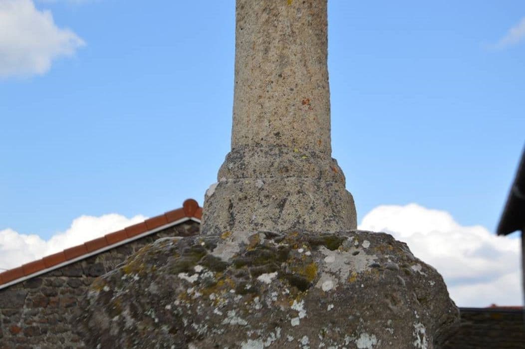 Cette croix en lave volcanique rouge est à section quadrangulaire et les croisillons ornés d'une double rainure s'évasent à leur extrémité en forme de croix de Malte. Une statuette du Christ est placée sur la face antérieure. Rien sur la face postérieure. Le fût est cylindrique, orné de moulures aux deux extrémités et repose sur une base tronconique portant la date 1772.