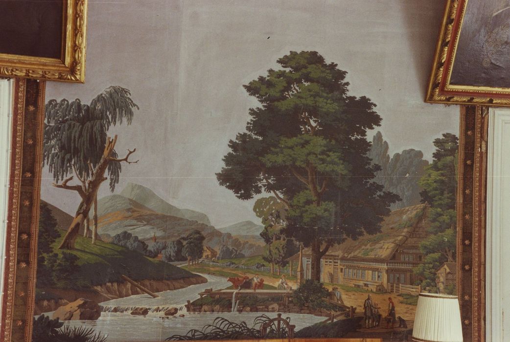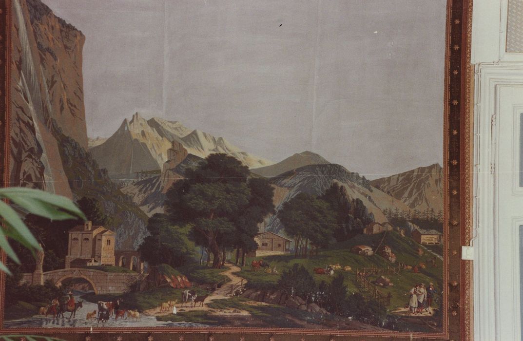 Cet hôtel, élevé au 17e siècle sur une place du bourg, possède l'architecture habituelle de ce type de résidence noble de l'époque classique, sans décor remarquable hormis la porte d'entrée. Un salon a été doté d'un ensemble de papiers peints panoramiques représentatifs de ce genre de décor. Il s'agit d'un exemplaire non datable d'un modèle produit depuis 1804 par la manufacture Zuber et intitulé "Vues de Suisse" d'après un dessin du peintre Mongin. Il correspond au goût de l'époque pour une nature variée et pittoresque, interprêtée selon un mode rousseauiste et romantique, et agrémentée de monuments et de personnages.