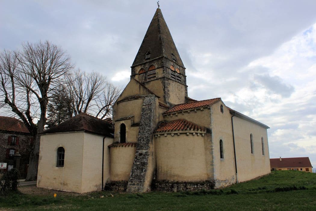 Eglise d'origine romane, dont il subsiste de cette période la nef, le transept, le clocher, le choeur et les absidioles. Les murs latéraux des bas-côtés ont été reconstruits à une époque récente. La façade occidentale s'ouvre par une porte en arc brisé abritée sous un porche établi postérieurement. Le porche d'entrée est orné d'un reste de peinture murale du 15e siècle, représentant la Vierge et plusieurs saints. Le vantail droit de la porte présente un verrou du 15e siècle, en fer forgé, dont l'extrémité est ornée d'une tête d'animal. Au-dessus de la fenêtre ouvrant sur les bras nord, est encastré dans un mur une pierre en andésite sculptée d'armoiries bûchées, sous une couronne. L'édifice est un élément archéologique intéressant pour l'étude du roman auvergnat.
