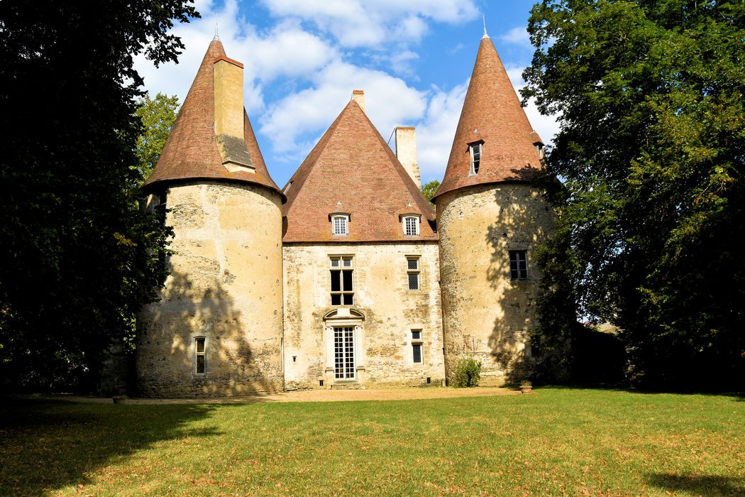 Exemple de construction médiévale agrandie à l'époque classique. Une importante campagne de travaux permit au 18e siècle de réunir au gros donjon carré des 14e-15e siècles un long bâtiment englobant l'ancien logis à tourelle dont il était séparé. Le donjon a conservé l'essentiel de ses dispositions et de son décor. Le nouveau logis fut doté de larges ouvertures et de décors intérieurs dignes d'une demeure de plaisance. Parc à l'anglaise aménagé dans l'ancienne enceinte, agrémenté de plantations, pièces d'eau, portails en pierre et ferronnerie et communs.