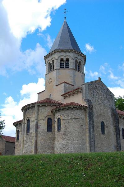 L'église se situait dans l'enclave du château, dont les seigneurs étaient les premiers vassaux des ducs de Montpensier, incendié en 1369. Des démolitions trouvées au cours des fouilles de la façade au 19e siècle, permettent de supposer qu'elle était attenante au château. La construction de l'église, de style roman, remonte au 12e siècle (1140). Au 19e siècle, des peintures murales ont été retrouvées sous les badigeons, représentant des saints (martyrs de saint-Sébastien et de saint-Etienne) et diverses ornementations.