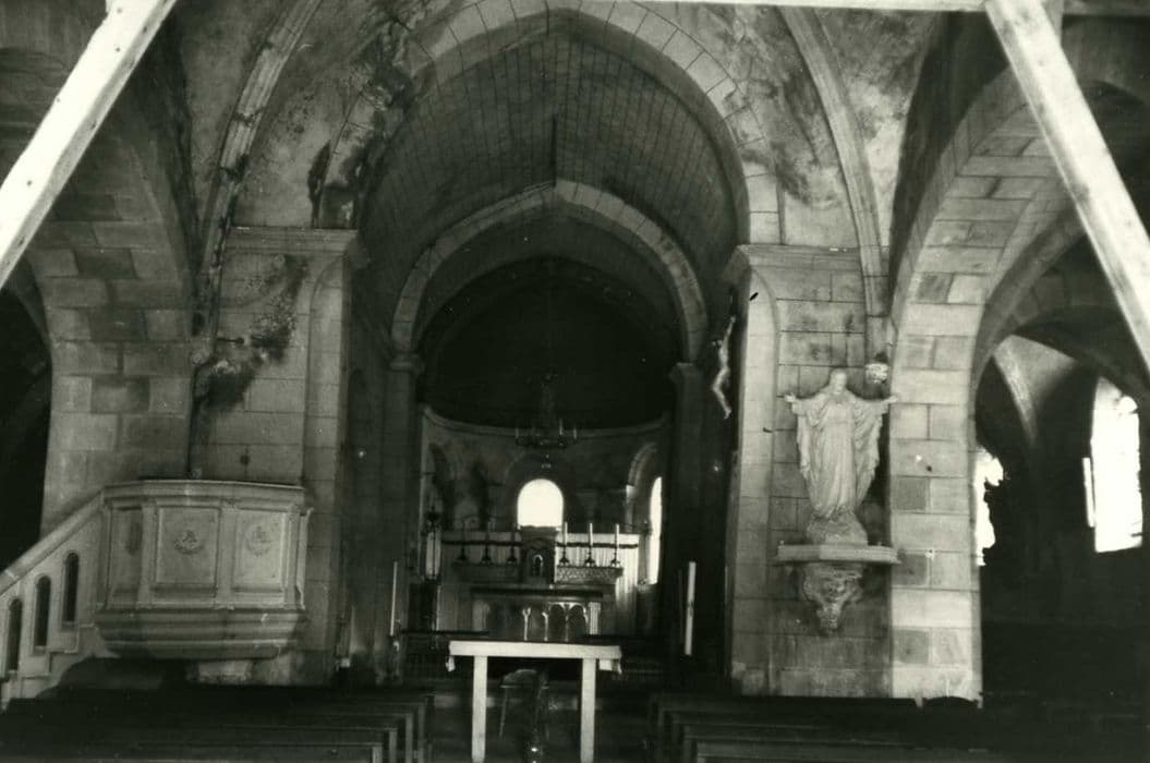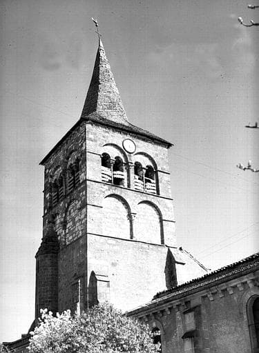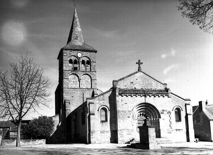 Edifice roman de la fin 12e siècle, profondément remanié dans les années 1890-1899 par l'architecte L. Tourteau, en particulier la restauration assez lourde du portail qui lui a fait perdre de son authenticité. L'édifice se compose d'un vaisseau de quatre travées flanqué de bas-côtés et terminé par une abisde en hémicycle. Voûtée en cul-de-four, l'abside est la seule partie à avoir conservé son état primitif. Elle est ornée, sur son pourtour, d'une arcature composée de trois arcs en plein cintre encadrant les fenêtres, et séparés par des arcs en mître aveugle, dispositif commun à plusieurs églises de la région. Les colonnes montées sur mur-bahut qui portent cette arcature, sont couronnées de chapiteaux à feuilles plates, entrelacs, palmettes et crosses. Le clocher carré du 12e siècle repose sur la troisième travée du collatéral nord dont il est isolé par une voûte sur croisée d'ogives reposant sur des culots.