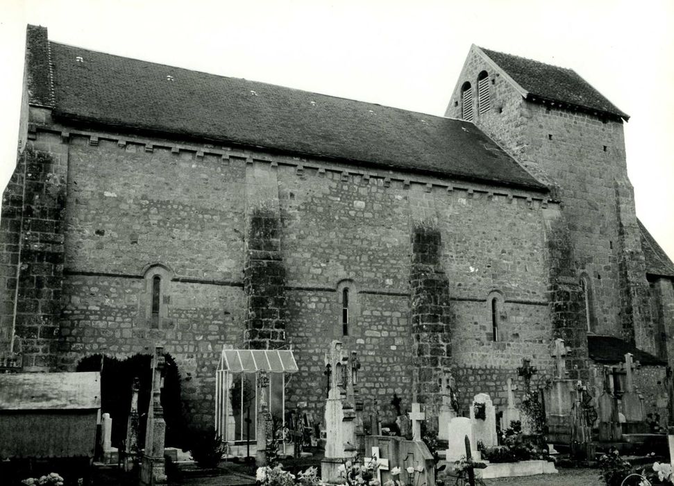 Edifice de la fin de la période romane composé d'une nef à trois travées reliée à l'est par deux travées de moindre largeur, à une abside en hémicycle, comprise extérieurement dans un massif de maçonnerie à trois pans. Trois fenêtres en plein cintre s'ouvrant au milieu des pans éclairent l'abside. La travée droite orientale est recouverte d'un berceau et séparée de l'autre, couverte d'une coupole sur trompes, par un doubleau brisé, à double rouleau, reçu par des colonnes sur dosserets. L'arc triomphal brisé est supporté de même façon. Un berceau brisé, sur doubleaux, couvre la nef. Le bas des murs latéraux est renforcé d'un arc brisé aveugle par travée, retombant sur des pilastres au-dessus desquels s'élèvent les colonnes sur dosserets destinés aux doubleaux et que couronnent des chapiteaux à feuilles plates. La porte de façade, en plein cintre, est dépourvue de tympan. Elle est percée dans un avant-corps que couronne un glacis souligné d'une ligne de corbeaux. Elle est encadrée d'une archivolte de trois boudins qui se relient, sans l'intermédiaire de chapiteaux, aux colonnes des piedroits. Le clocher carré a été tronqué pour être recouvert d'un toit en bâtière.