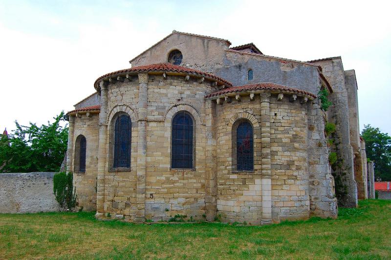 Eglise romane à une nef et deux bas-côtés voûtés en quart de cercle, ayant remplacé une église primitive mentionnée dans les documents du 10e siècle et qui dépendait de Cluny. L'édifice primitif devait se limiter aux trois premières travées, continuées au 12e siècle par deux autres, dont une formant transept, et les trois absides. Les piliers des deux travées avoisinant le choeur sont cantonnés de colonnes engagées dont les bases sont pourvues de griffes. L'ornementation des chapiteaux comprend des personnages, des guerriers mêlés à une flore et à une faune fantastiques (griffons buvant dans un calice...). Le porche et le clocher, qui menaçaient ruine, ont été démolis au début du 20e siècle.