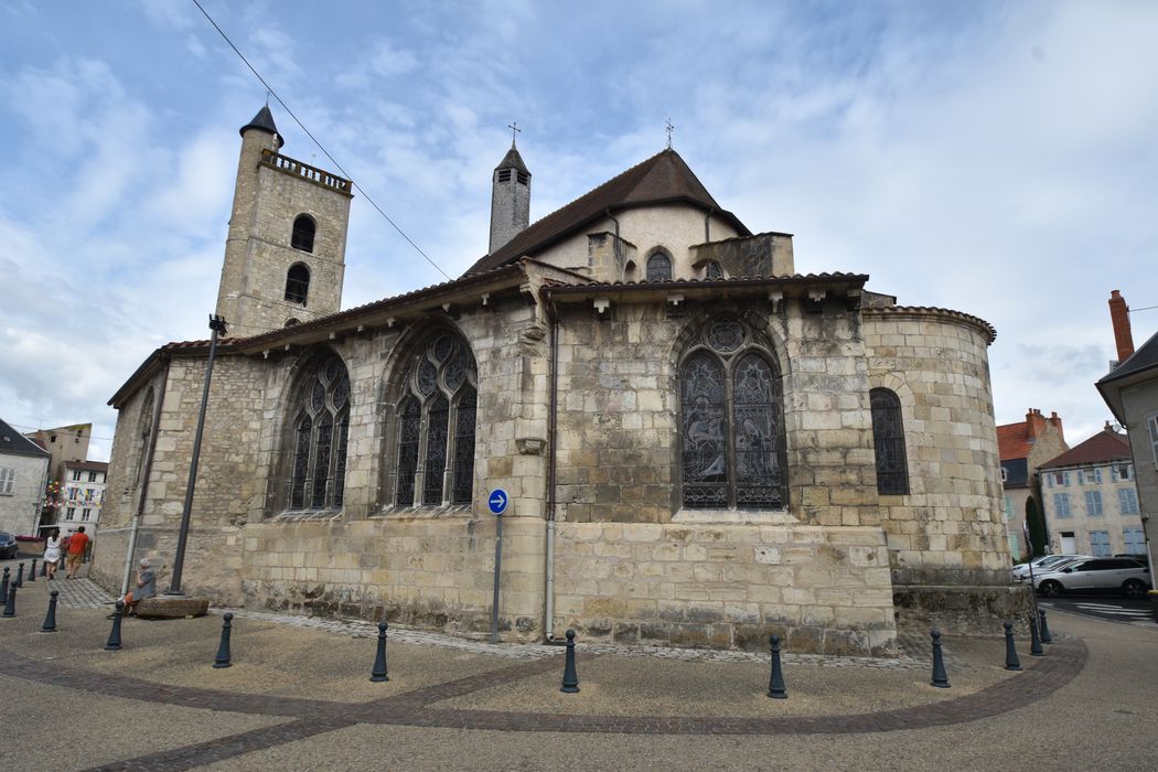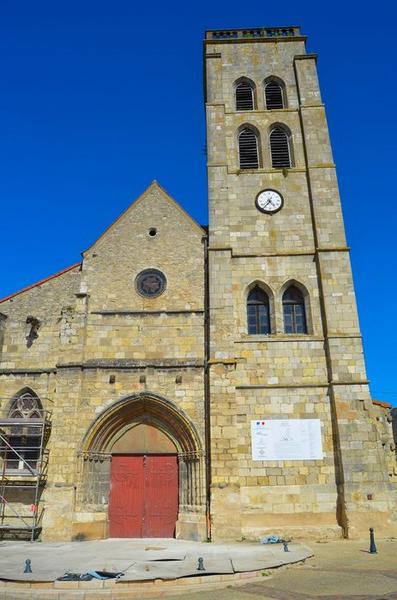 L'église se compose d'une nef centrale comprenant quatre travées, d'une travée à la suite correspondant à la croisée de l'ancien transept, puis d'une travée de choeur terminée par un sanctuaire polygonal. Un bas-côté enveloppe et dessert tout ce premier ensemble, ainsi qu'un certain nombre de chapelles, d'époques diverses. L'église primitive datait de la fin du 11e siècle (une absidiole, une partie du mur du déambulatoire avec ses colonnes et chapiteaux). L'église actuelle, dans la presque totalité de sa nef et de ses bas-côtés, a été bâtie au début du 14e siècle sur les fondations de l'édifice du 11e. La menuiserie des portes latérales paraît dater du 14e siècle. Les chapelles ajoutées sont, pour la plupart, du 15e et du 16e siècle. La tour sud-ouest de la façade principale date du 16e siècle.
