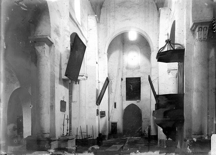 Edifice fortement remanié à différentes époques. Les bras du transept sont attribués au 11e siècle, ainsi que le début de la nef. Deux piliers de la nef et des chapelles adossées au bas-côté sud et le porche, remontent au 12e siècle. L'abside est de la fin du 12e siècle. Les chapelles adossées au bas-côté nord furent construites au 17e siècle. Les bas-côtés sont voûtés en demi cercle. Il subsiste des traces de peintures murales sur les arcs des bas-côtés.