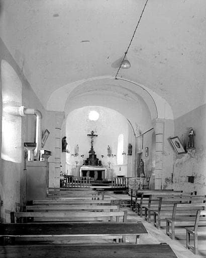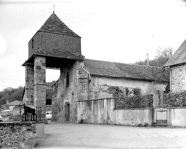 Edifice roman (abside) retouché au 16e siècle (façade) , à nef unique avec un croisillon à droite, terminé par une abside en hémicycle, présentant un clocher-porche monté sur deux piles carrées édifié en avant de la façade et coiffé d'une sorte de comble à la Mansart couvert en ardoises, qui abrite le beffroi. Restaurations menées en 1858.
