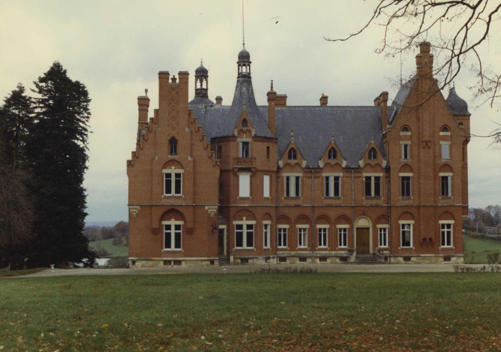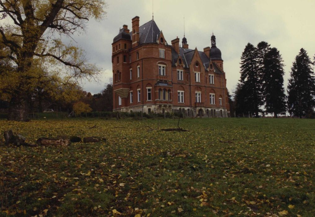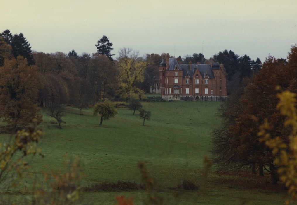 Edifice éclectique en brique rouge, de plan asymétrique, de la fin du 19e siècle, construit dans le goût anglais par les architectes Jean et René Moreau, à la place d'une maison de maître démolie pour l'occasion. Le projet initial est conçu par Jean Moreau, et poursuivi en 1899 par son fils, René, en collaboration avec le commanditaire, Stephen Durieu de Lacarelle, qui revenait alors d'un voyage en Ecosse. Il témoigne du style anglicisant des années 1900. Le parc a été redessiné à la même époque dans le même esprit. Les décors intérieurs illustrent également le choix de l'éclectisme, et ont été exécutés par le sculpteur Thiébaud (1895-1898) et le peintre décorateur Detanger. Grand escalier de style Renaissance en marbre rose (1895) ; les grand et petit salons sont séparés par des colonnes à chapiteaux corinthiens et décorés de stucs et de boiseries dans l'esprit 18e siècle. La bibliothèque-fumoir, le cabinet de travail, la salle-à-manger aux boiseries inspirées du 18e siècle (dessus de portes à scènes mythologiques) ont été récupérés en partie au château de Logère. Des scènes peintes décoratives proviennent du château de Montriboux. A l'étage, les chambres ont été décorées et meublées chacune dans un style différent (Louis XIII, Louis XIV, Louis XV, Louis XVI, Empire).