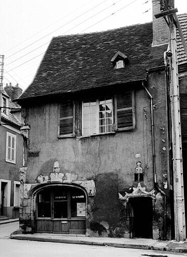Exemple unique localement de l’architecture civile d’esprit « transition » entre art gothique flamboyant et style Renaissance. Demeure reconstruite sans encorbellement, en 1513, en blocage de galets de rivière du Cher, de pierres et de tuileau, par le maître maçon Colin Magniet, à l’initiative du maître ès arts Pierre Alexandre, son nouveau propriétaire [AM Montluçon, DD 81, 10 mai 1513, accord transactionnel]. À la suite de cet accord passé avec les consuls de Montluçon, la maison antérieure en pans de bois reposant sur trois piliers, en fort encorbellement sur la rue, qui encombrait gravement la manœuvre tournante des charrois sur la voie publique, avait été vouée à la démolition et à l’alignement, moyennant une forte indemnité. Située à l’intersection de deux artères très fréquentées, en vis-à-vis de la halle de la boucherie, la maison Alexandre voisinait au début du 17e siècle avec la demeure de Bérard Bridier, membre d’une des principales familles de marchands bouchers de la ville, à laquelle elle est aujourd’hui réunie. [S. Gibiat, « Aux origines de la réglementation urbanistique : un accord passé entre les consuls de Montluçon et Pierre Alexandre […] », Bull. des Amis de Montluçon, 3e s., n° 59, 2008, p. 177-182]. Cette demeure à usage mixte, bourgeois à l’étage et marchand au rez-de-chaussée, se trouvait adossée à l’orient à la maison des petites écoles de la ville (au niveau du n° 53 Grand’rue), construite à l’initiative des consuls en 1512-1513 [AM Montluçon, GG 35, 11 mars 1512].
