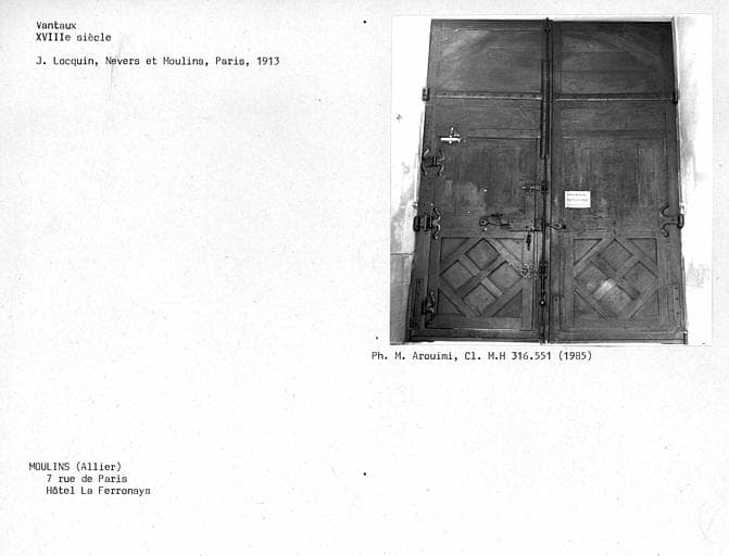 (c) Monuments historiques. Cette notice reprend intégralement les termes de l’arrêté de protection au titre des Monuments historiques. Elle répond à l’obligation réglementaire du ministère de la Culture d’établir la liste générale des immeubles protégés (art. R. 621-80 du Code du patrimoine). Elle est donc opposable et fait foi juridiquement. Aucune copie numérique ou papier ne sera fournie par courrier ni courriel. Le dossier de protection complet et l’arrêté sont consultables uniquement sur place, dans la salle de lecture de la Médiathèque du patrimoine et de la photographie (MPP), à Charenton-le-Pont (Val-de-Marne).