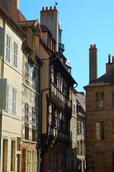 Exemple de l'architecture civile du 15e siècle dans la capitale du Bourbonnais, avec corbeaux de pierre sculptés, armature de bois croisillonnée en façade, et encorbellement du second étage appuyé sur des supports terminés en pendentifs et reliés entre eux par des arcs. A l'intérieur de la cour, tourelle d'escalier à vis avec porte à accolade flanquée de pinacles.
