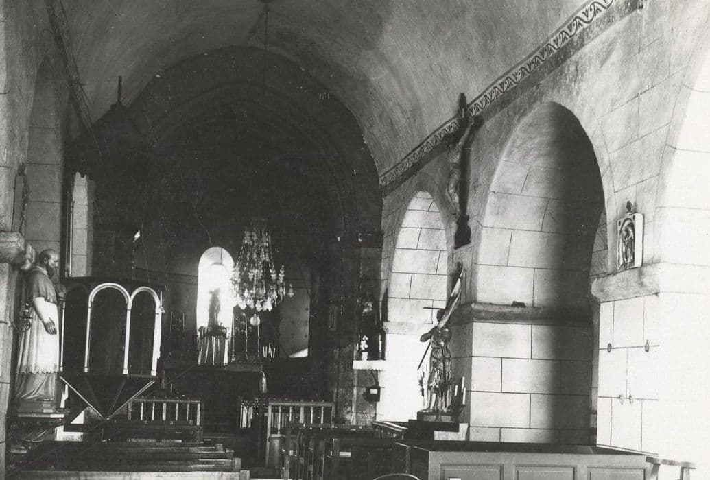 Edifice roman de la fin du 11e début 12e siècle, comprenant une nef de quatre travées voûtée en berceau, terminée par une abside semi circulaire. De gros piliers rectangulaires couronnés d'un imposte séparent la nef de ses bas-côtés voûtés en quart de cercle, selon le mode auvergnat. La nef a dû être voûtés postérieurement, comme l'indique l'arc triomphal en tiers-point. Sur le choeur s'élève un clocher carré ajouré d'une baie jumelée sur chacune de ses faces.