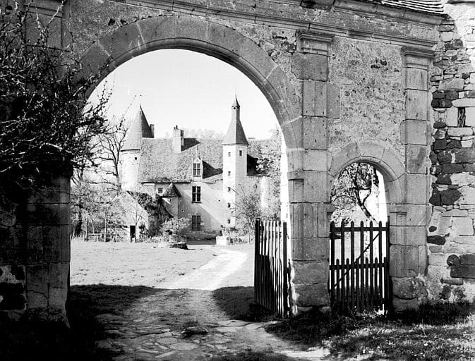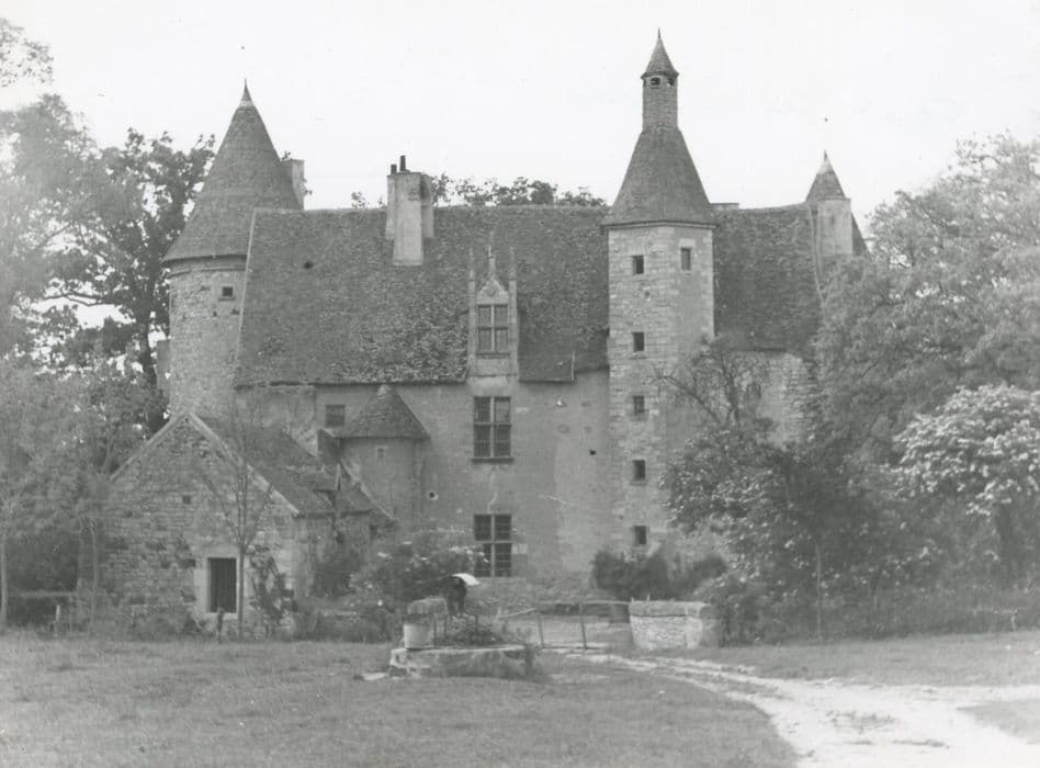 Gentilhommière du 15e siècle comprenant un corps de logis flanqué de deux tours au nord, encadrant les trois pièces de chaque étage. Au sud, tourelle polygonale abritant l'escalier. Une tourelle ronde a été ajoutée postérieurement pour un second escalier. Il subsiste encore quelques cheminées à manteaux sur colonnettes à bases moulurées. Sur l'une d'elles sont sculptées les armoirries à trois fasces mortaisées, reproduites également sur un linteau de porte. L'ensemble est encore entouré de douves avec un pont vers le potager, et flanqué de deux tourelles arasées encadrant l'entrée. L'avant-cour est limitée à l'ouest par un mur percé de meurtrières. A l'extrémitée sud subsiste un ancien bâtiment dit "corps de garde" sur lequel s'appuie le portail élevé au 17e siècle. Deux autres tours isolées, reliées entre elles, au château et au corps de garde par des murs, protègent la propriété vers l'ouest. Propriété vendue comme bien national en 1793.