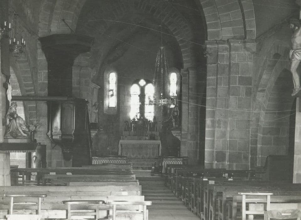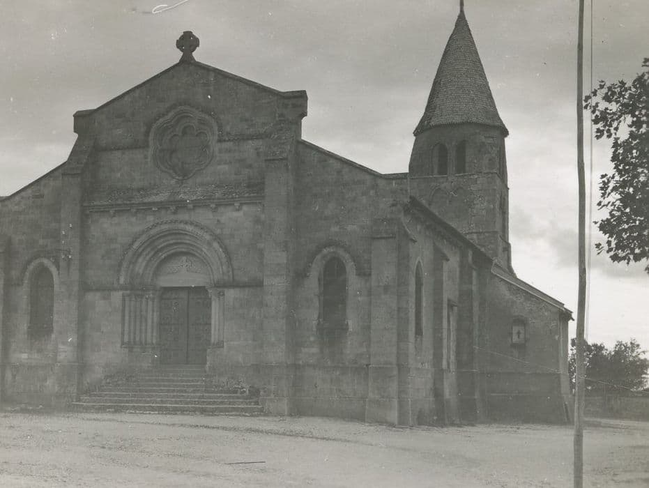 L'église d'époque romane se composant d'une nef de quatre travées (première travée construite en 1880 par l'architecte Moreau ; les trois autres datent du 12e siècle) et de deux bas-côtés, couverts en berceaux brisés portés sur des doubleaux. Deux absidioles en cul de four terminent les bas-côtés ; un chevet plat, remonté au 13e siècle, remplace l'abside. Un clocher du 13e siècle, couronné par une flèche couverte de bardeaux, surmonte la travée précédant l'absidiole sud. Le monument a été restauré au 19e siècle : la façade, la première travée de la nef et l'absidiole nord ont été reconstruites. La façade du mur du bas-côté nord a été en partie remontée, ainsi que les ouvertures des baies du bas-côté sud. La nef, le choeur et l'abside côté sud ont seuls gardé leur caractère ancien. A l'extérieur, le mur occidental moderne est percé d'une porte de style roman surmontée d'une rose polylobée. Le clocher carré est à deux étages avec arcatures géminées. A l'étage supérieur, talus aux angles qui se raccordaient primitivement à une flèche en pierre, détruite en 1619 par un ouragan, et remplacée par une flèche conique en charpente.