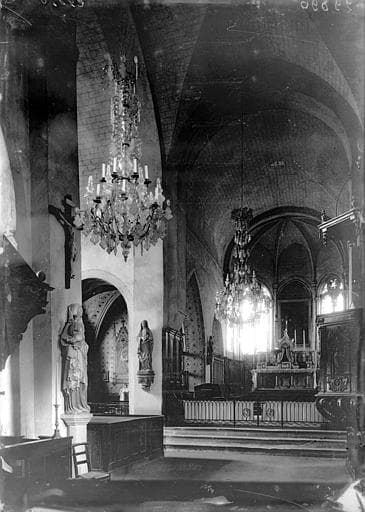 L'édifice a conservé, dans la majeure partie de son ensemble, ses dispositions primitives remontant à la première moitié du 12e siècle. La nef comprend quatre travées voûtées en berceau d'ogive sur doubleau. Les bas-côtés sont couverts de voûtes d'arêtes. Les deux transepts, la travée de croisée et la travée formant choeur sont fermés par des berceaux plein cintre. Le sanctuaire est voûté sur nervures. Du côté gauche du choeur, une grande chapelle divisée en deux travées a remplacé au 15e siècle le bas-côté roman et son absidiole. Les chapelles latérales au bas-côté gauche de la nef, ont été établies aux 15e et 16e siècles. Au début du 17e siècle, construction du clocher sur la première travée de la nef. Ce dernier se trouvait primitivement sur la croisée. Une crypte, paraissant dater du 11e siècle, s'étend sous le sanctuaire et une partie du choeur. Elle a été déblayée en 1872. Les voûtes d'arêtes qui la forment, portent des traces de peinture du 15e siècle et des inscriptions sur phylactères.