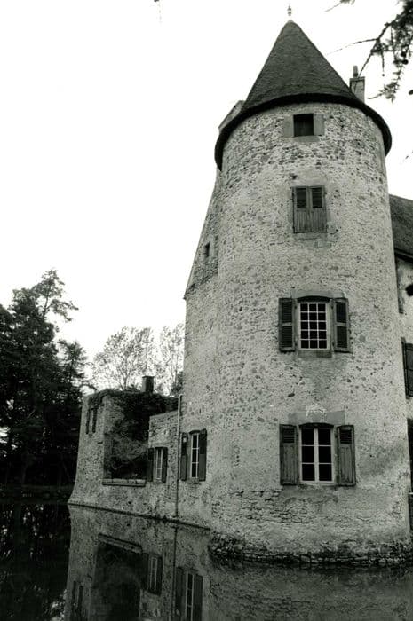 Château entouré de douves et de diverses habitations et dépendances ordonnées autour d'une cour précédant l'ensemble fortifié. Quadrilatère de trois étages plus comble, contourné à l'origine de quatre tours rondes, les deux tours ouest ayant disparu, le tout ceint de douves. La façade ouest comprend une tourelle d'escalier demi hors-oeuvre. Au rez-de-chaussée, trois pièces comportent un décor du début du 18e siècle, garnies de boiseries à moulures cintrées Louis XIV. Deux pièces du deuxième étages conservent une cheminée en pierre du 15e siècle, à piedroit formant colonnettes et manteau saillant.