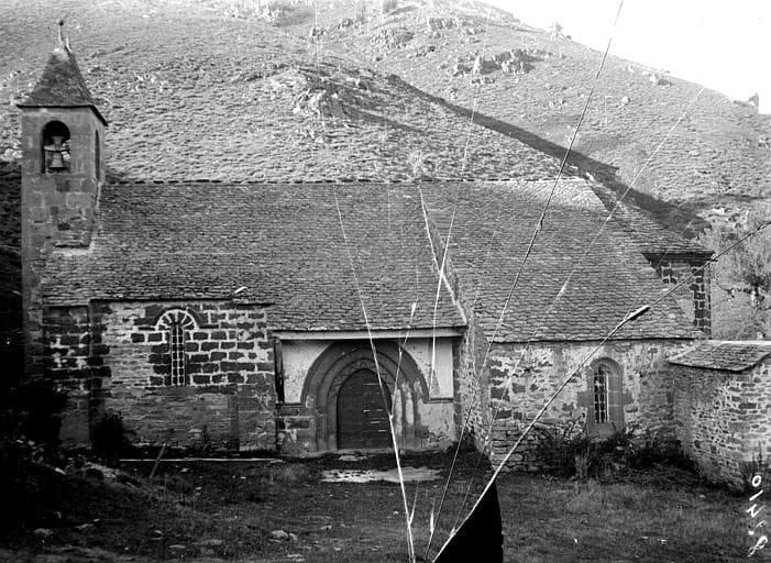 Edifice du début du 12e siècle, saccagé par les routiers d'Aymerigot Marchés vers 1390, et relevé de ses ruines au siècle suivant. Son plan primitif est celui d'une nef barlongue de trois travées voûtées en plein cintre sur laquelle s'ouvre un choeur s'achevant par une abside semi-circulaire surmontée d'un cul-de-four. Les dévastations du 14e siècle ne laissèrent que l'abside et les parois de la nef. Au début du 15e siècle, reconstruction d'un plafond en bois dans la nef, ouverture de chapelles voûtées d'ogives de chaque côté de la travée proche du choeur, érection partielle du clocher sur le pignon ouest, mise en place du porche dans la seconde travée de la nef. L'arc triomphal repose sur les chapiteaux, ornés de rangées de fruits ou de feuilles, de colonnes à base attique. Ajout d'une sacristie, reconstruite en 1824. Le clocher, de plan rectangulaire, présente sur chaque face du beffroi une baie en plein cintre. La cloche porte la date de 1558.
