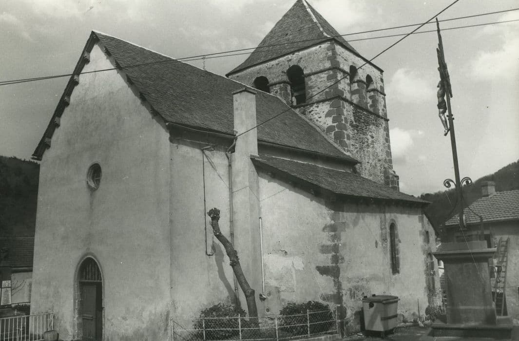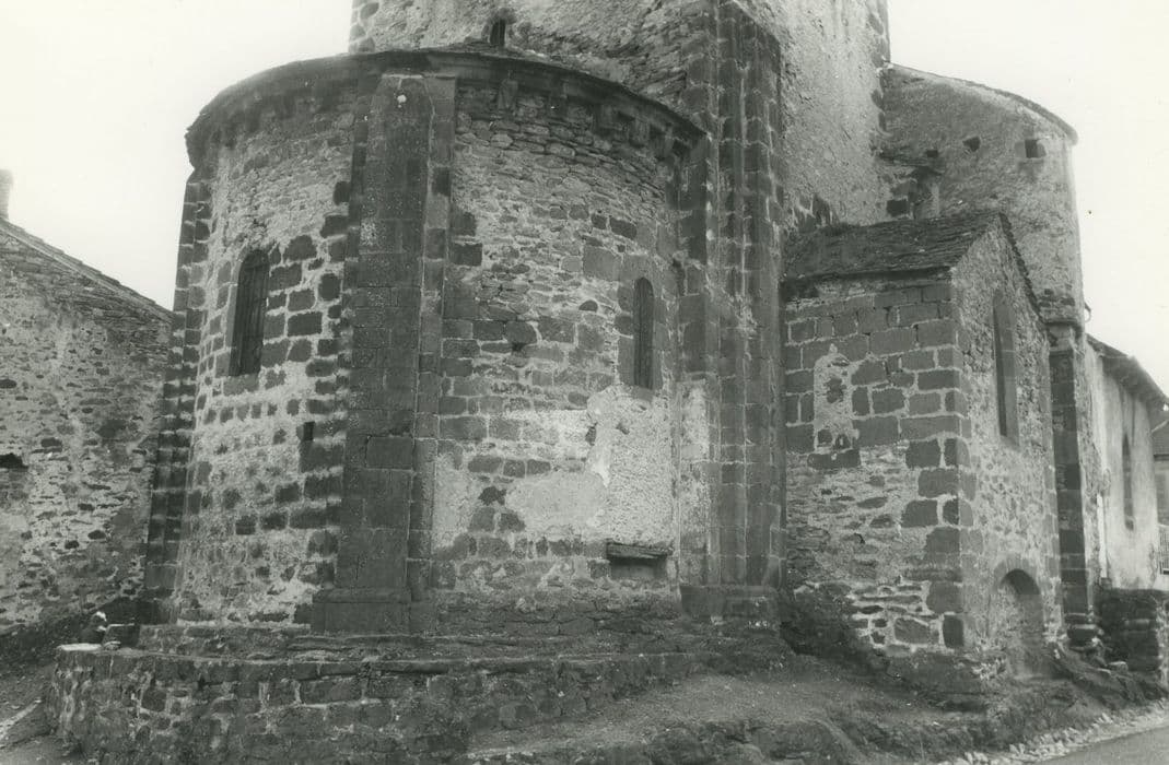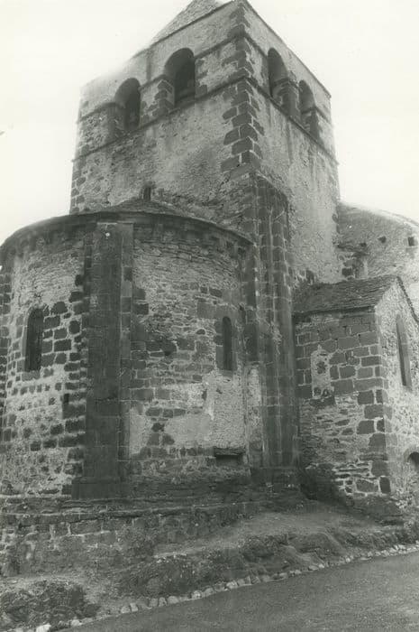 Eglise du 12e siècle, modifiée au 15e par l'ajout d'une tour-escalier ronde accolée au clocher et deux chapelles, puis au 16e par l'ouverture d'une chapelle méridionale dans le choeur, enfin au 19e par la modification du pignon et du porche et la construction d'une sacristie au sud. En 1755, effondrement du clocher, entraînant la chute d'une partie de la voûte de la nef. Le clocher semble avoir été refait à l'identique, mais ce dernier est abattu à la Révolution. Des travaux furent réalisés sous la Restauration. En 1854, démolition de la sacristie qui bouchait la baie septentrionale du chevet et construction d'une nouvelle au sud du choeur. A la fin du 19e siècle, réfection du pavage de la chapelle sud, du pignon et de sa porte, d'une toiture sur charpente après surélévation des murs gouttereaux. En 1903, réfection des peintures du sanctuaire et de la chapelle du choeur. ££Le plan primitif de l'église se composait d'une nef rectangulaire voûtée en berceau, précédant un choeur carré surmonté d'une coupole hémisphérique, suivi d'une abside en cul-de-four semi-circulaire sur ses deux faces. Au 15e siècle, l'ordonnance est modifiée par la création de deux chapelles dans la deuxième travée de la nef. Au 16e siècle, ouverture d'une chapelle au sud du choeur. Autour de l'abside, cinq arcatures retombent sur des chapiteaux décorés de palmettes. Intérieurement, cette église est représentative de l'architecture religieuse auvergnate rurale.